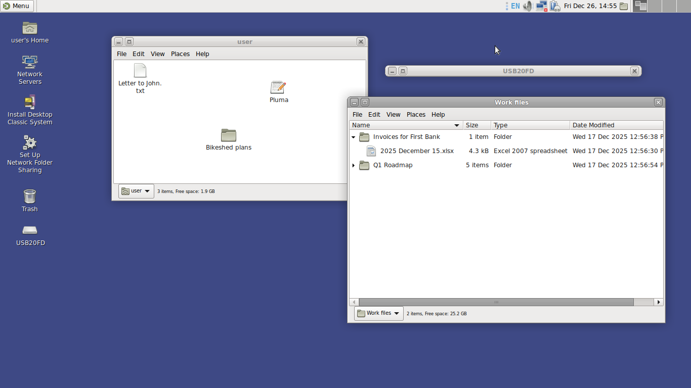 Desktop Classic System is an operating system based on Debian and a customized version of the MATE Desktop Environment that hearkens back to, but is not a direct copy of, the classic Mac OS. DCS seeks to provide and sometimes even improve upon the conceptual simplicity offered by the old Macintosh, in these ways: